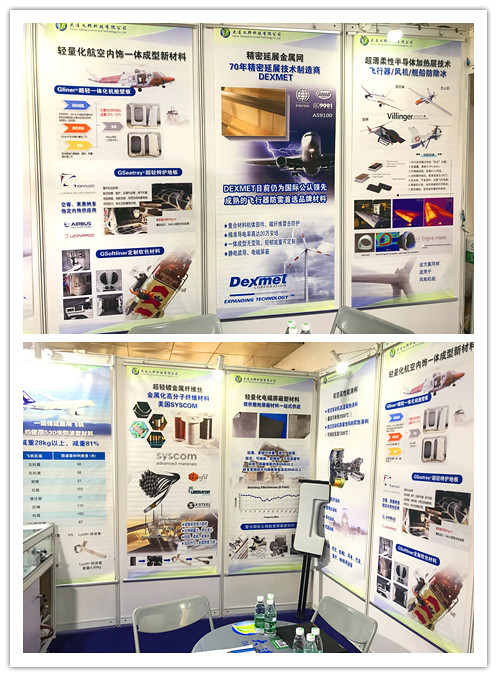 三天的展覽會,吸引了來自航空、航天、汽車、高速列車、船舶、能源、電子、基礎(chǔ)設(shè)施等領(lǐng)域的應(yīng)用單位、大學(xué)、科研院所10000余人次參觀展覽會,DEXMET精密延展金屬網(wǎng)作為復(fù)合材料機體部件防雷知名產(chǎn)品已被客戶熟知,其中防除冰和輕量化整艙屏蔽方案得到眾多院所和軍工單位項目咨詢。對金屬化的PBO纖維絲,AW189/169直升機搭配的輕量高效內(nèi)飾解決方案等所引入產(chǎn)品的先進性,給予了高度評價,日均接待客戶近百人次,留下合作意向項目信息90余份。